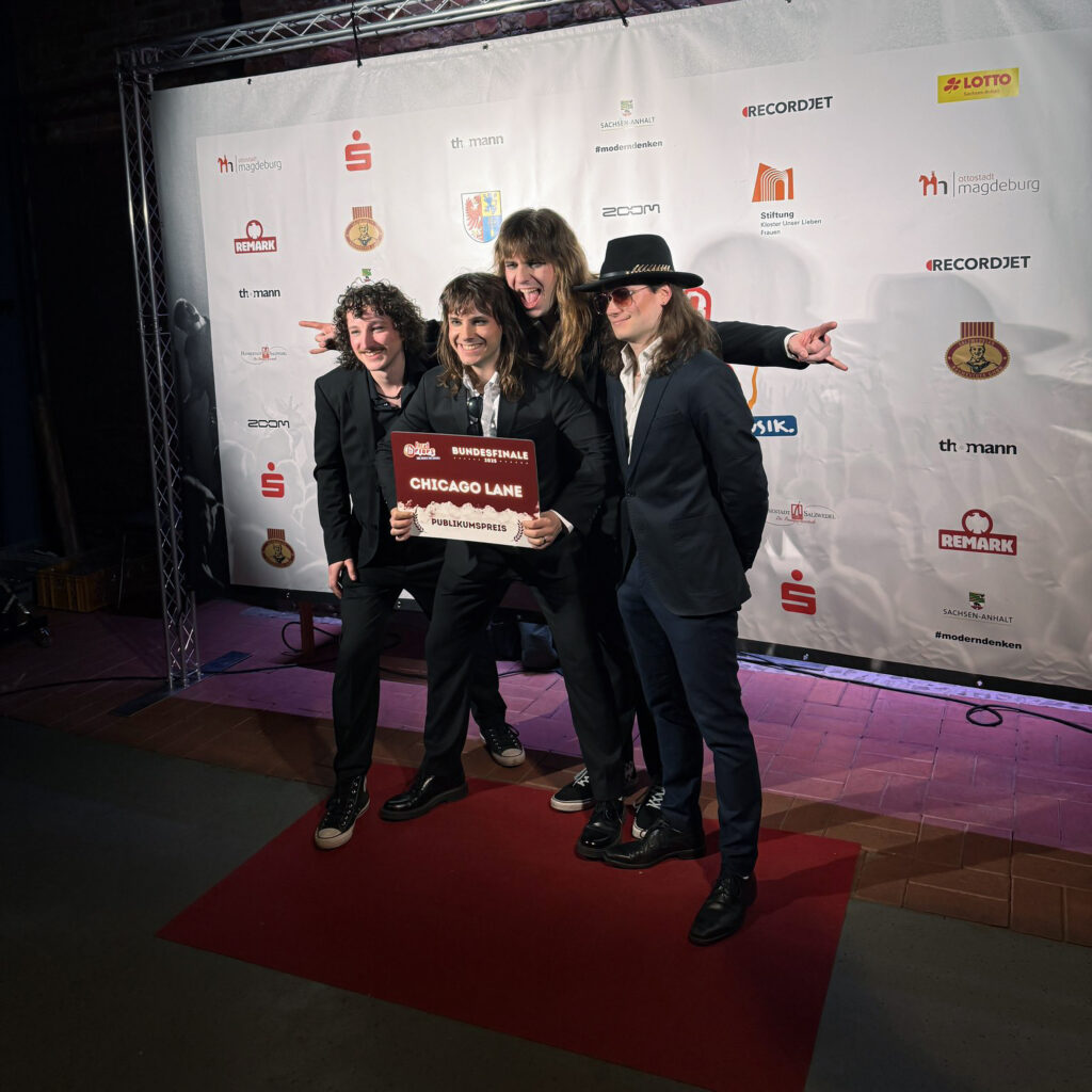 Living loud! Here comes Chicago Lane: young, dynamic, and full of hairspray. The German Glam Rock band consisting of David Island (Vocals), Malon Farrell (Guitar), Nic Adrian (Bass), and Paul Pioch (Drums) has set themselves the task of giving the music style of the L.A. Sunset Strip a fresh makeover. Chicago Lane did not rest on the success of their impressive streaming numbers, millions of video views on social media, and live performances including as a supporting act for Extrabreit (famous German band from the 80s) and numerous festivals (including with Madsen, Equilibrium, and U.D.O.). With their victory in the 2024 local heroes state final of Lower Saxony, the four guys earned a spot among Germany‘s top twelve newcomers.